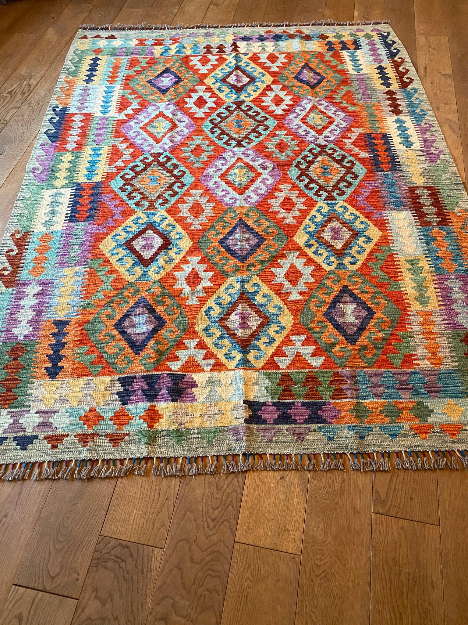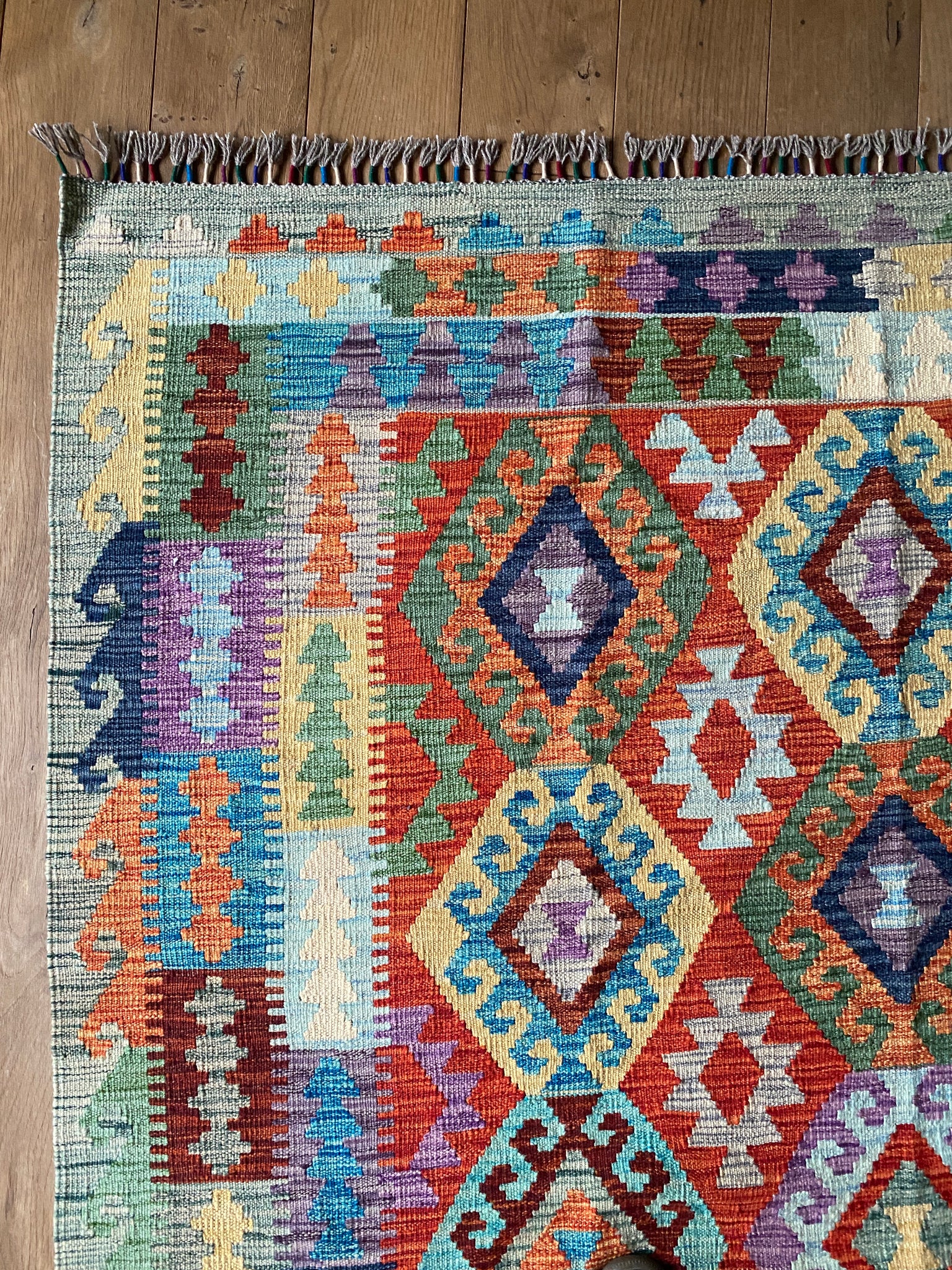 Jeder afghanische Woll Kelim ist ein Unikat, gefertigt in aufwendiger Handarbeit nach jahrhundertealter Tradition aus Schafwolle